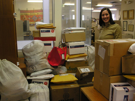 Ann Goett receiving your packages at the AFSC San Francisco office Where to send handmade blankets and wool garments