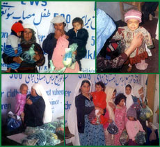 Distribution From Summer 2003 Campaign for 5,000 Children In Summer 2003, afghans for Afghans conducted a campaign to generate 5,000 wool hats, mittens, socks, and sweaters for children ages 1-5 years. Thank you to all the knitters and crocheters who responded enthusiastically to this request. Shipped overseas by World Concern, our gifts were distributed in December in time for the winter weather. |