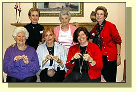 Milyko, Marrina Beck, Angelica Beck, and Amy Milyko assemble afghan squares.